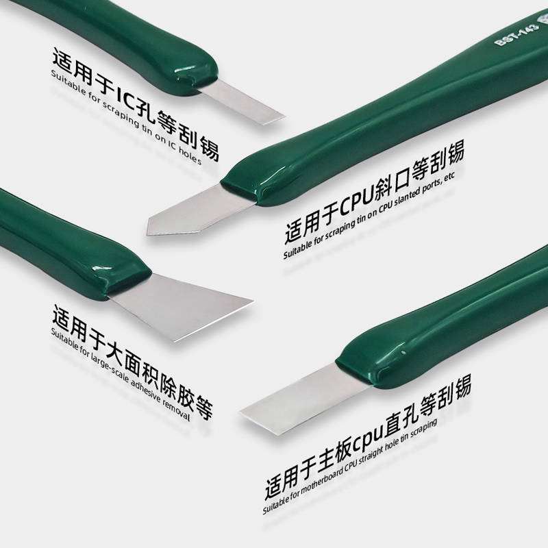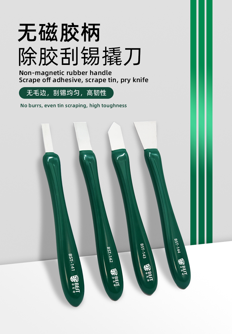 返回当前位置: 首页 / 产品中心 / BST-141/142/143/144 无磁刮锡刀 无磁胶柄除胶刮刀 超薄耐高温防锈防腐工具撬刀 锡浆搅拌BGA撬刀