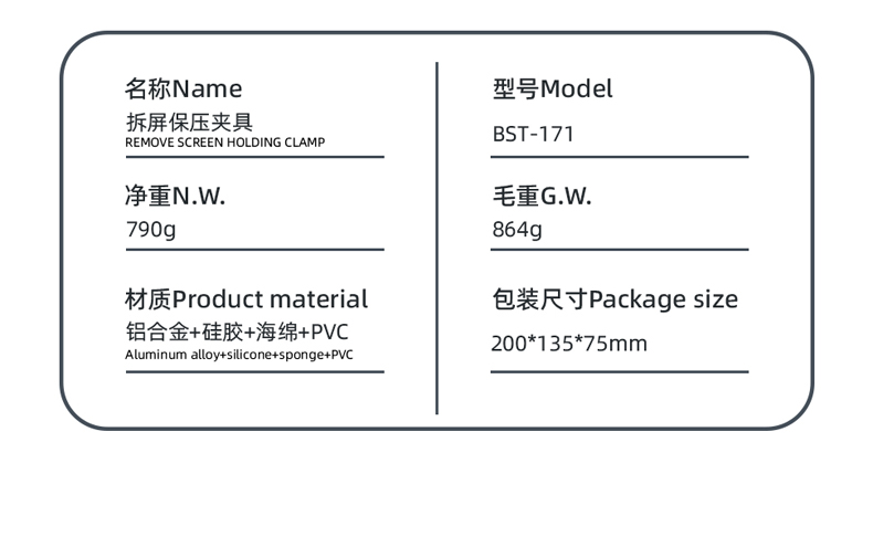 ? 产品名称: 手机拆屏保压夹具? 产品型号: BST-171? 产品类别: 维修卡具系列