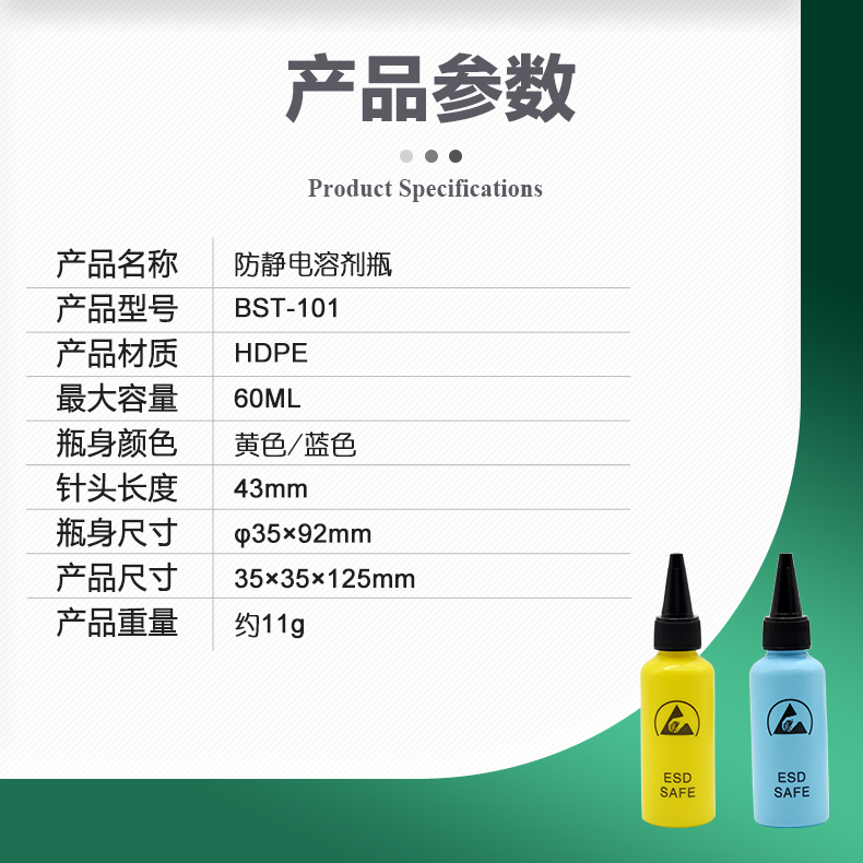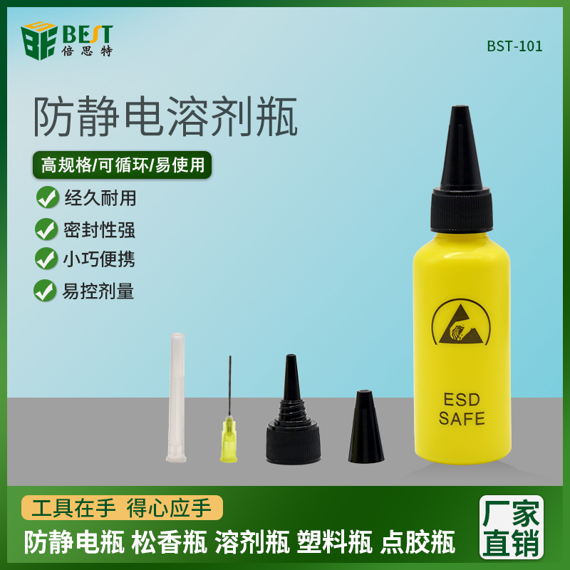 返回当前位置: 首页 / 产品中心 / BST-101 防静电溶剂瓶 防静电瓶 酒精瓶 松香瓶溶剂瓶 塑料瓶 防静电针头瓶 点胶瓶