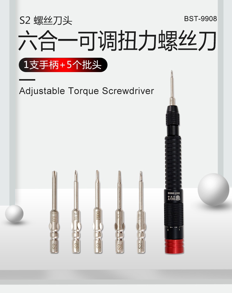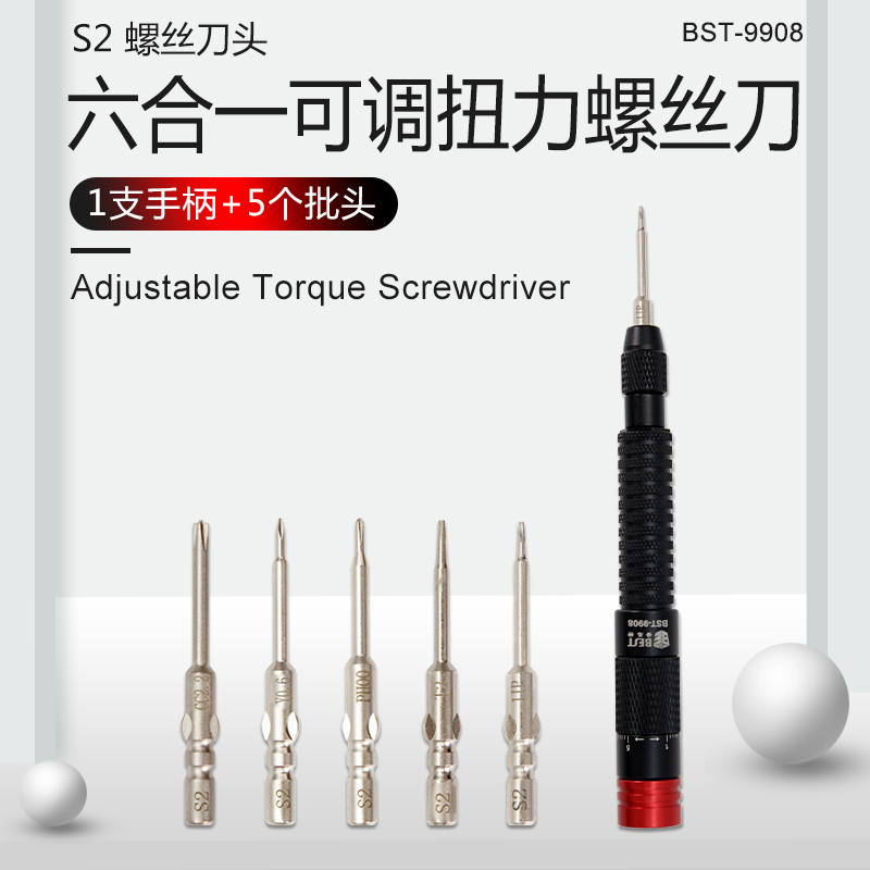 ? 产品名称: 六合一可调扭力螺丝刀套装? 产品型号: BST-9908? 产品类别: 套批系列