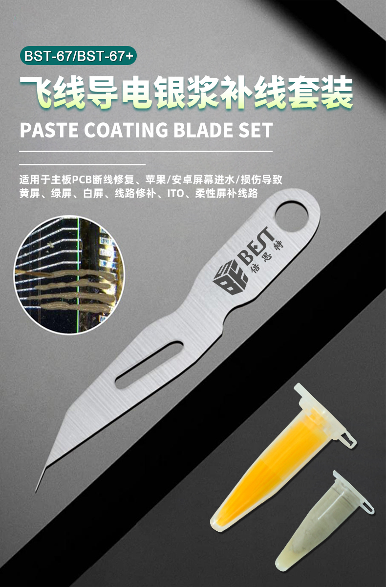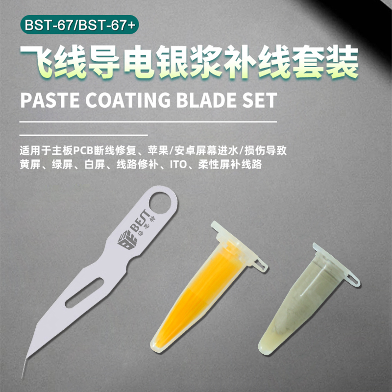返回当前位置: 首页 / 产品中心 / BST-67+ 银浆补线工具刀片套装 特制刀片 手机屏幕维修进水泛黄线路补修柔性屏补线刀 导电银浆套装
