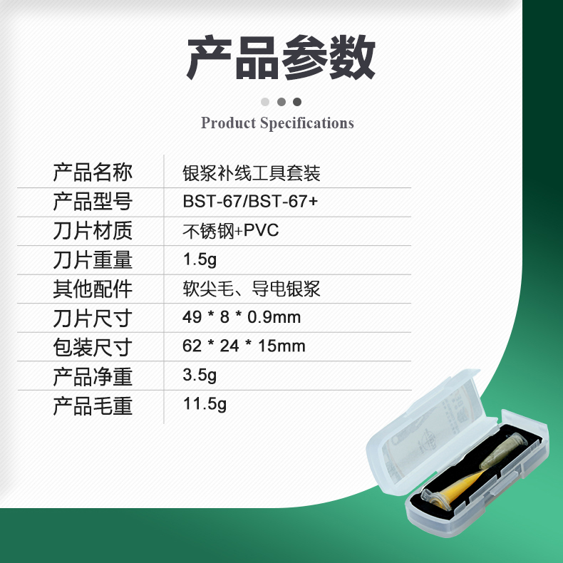 ? 产品名称: 银浆补线工具刀片套装? 产品型号: BST-67+? 产品类别: 刀具系列