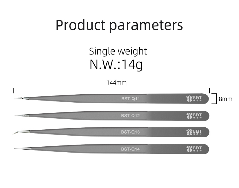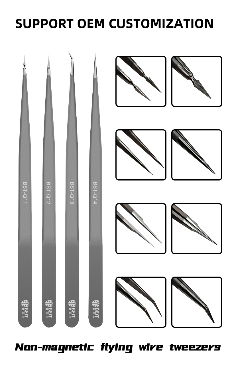 ? 产品名称: 无磁飞线镊子? 产品型号: BST-Q11/Q12/Q13/Q14? 产品类别: 镊子系列
