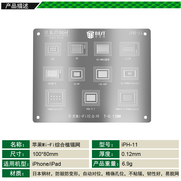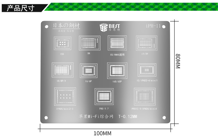 ? 产品名称: 手机Wi-Fi综合植锡网? 产品型号: iPH-11? 产品类别: 植锡网系列