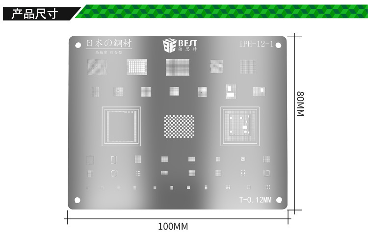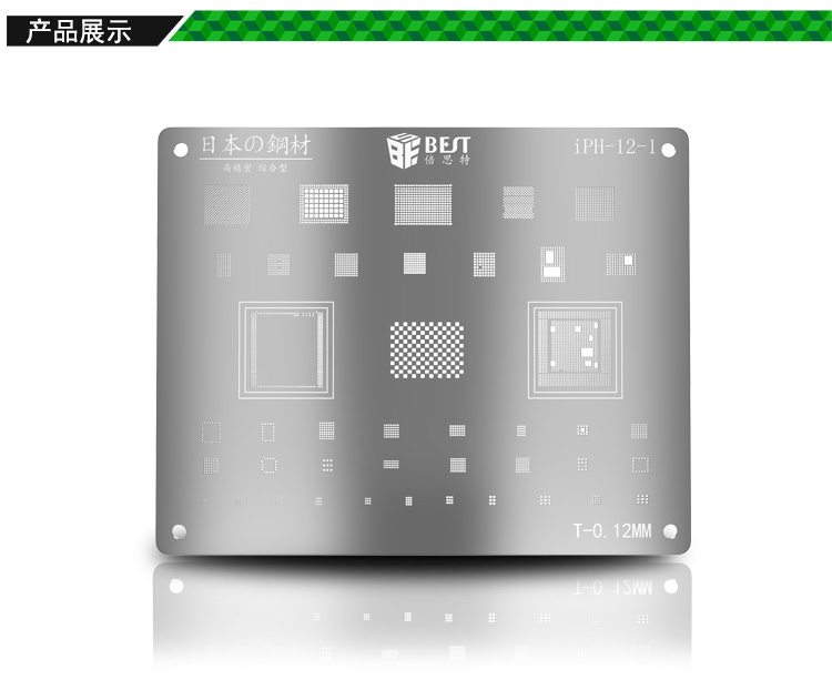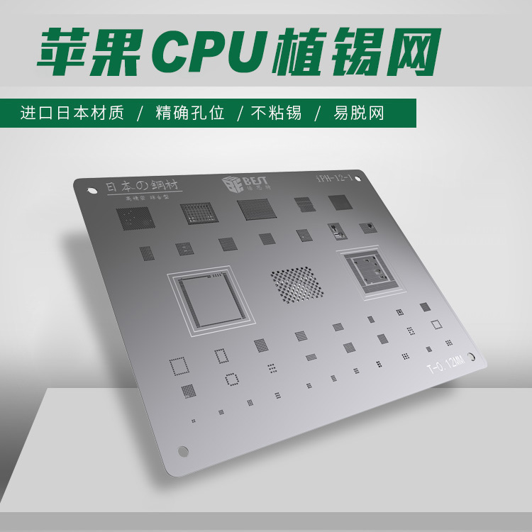 返回当前位置: 首页 / 产品中心 / iPH-12-1 手机CPU植锡网 多用植锡方孔定位钢网 植锡卡