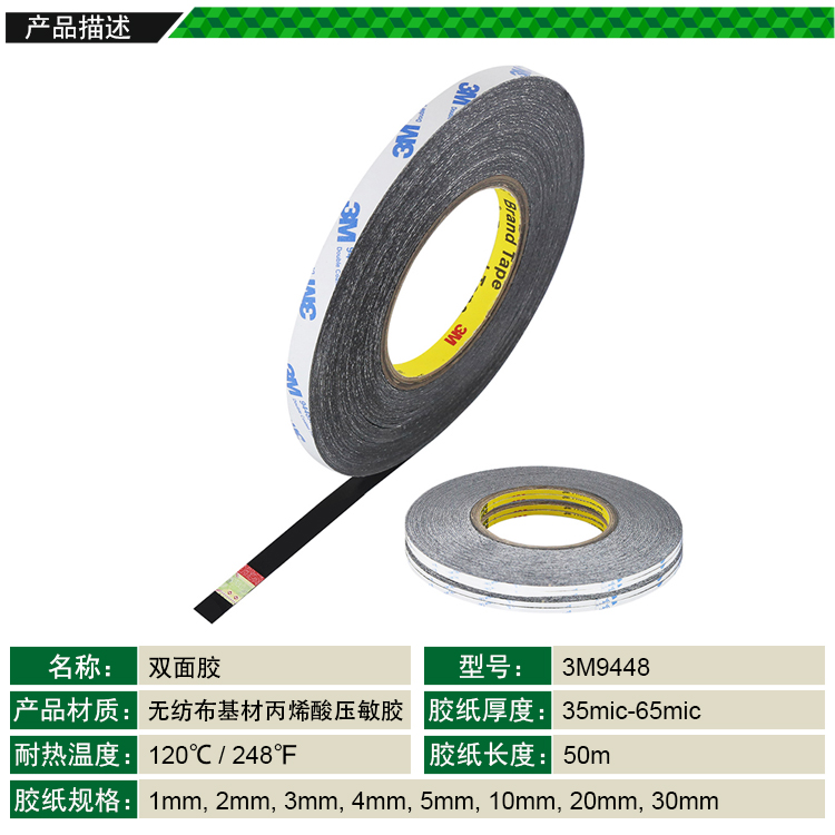 ? 产品名称: 黑色双面胶? 产品型号: 3M9448? 产品类别: 胶水胶纸系列