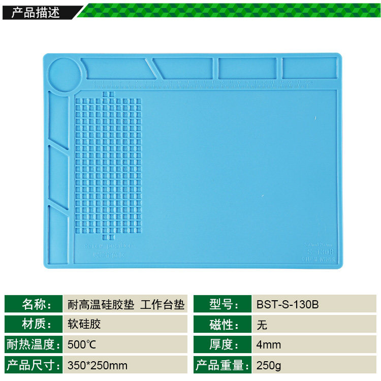 返回当前位置: 首页 / 产品中心 / BST-S-130B 耐高温硅胶垫 工作台垫 带八格零件收纳 螺丝记忆定位区 隔热垫