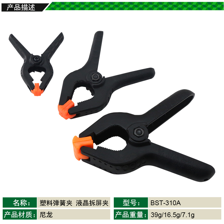 ? 产品名称:拆屏夹 塑料弹簧夹? 产品型号: BST-310A? 产品类别: 综合类系列