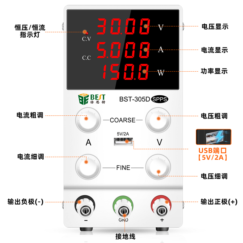 返回当前位置: 首页 / 产品中心 / BST-305D SPPS 开关型直流稳压电源 固测可调直流稳压电源30V/5A笔记本电脑手机维修开关电源
