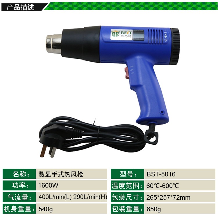 返回当前位置: 首页 / 产品中心 / BST-8016 LED数显手持式热风枪 BGA焊接工具 1600W