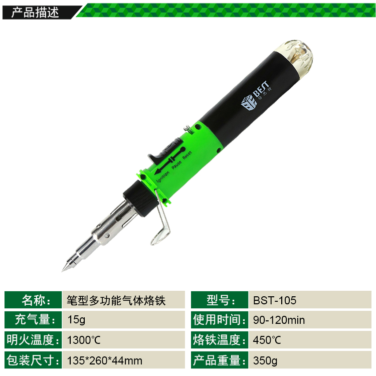 ? 产品名称: 笔型多功能瓦斯气体烙铁? 产品型号: BST-105? 产品类别: 焊接工具系列