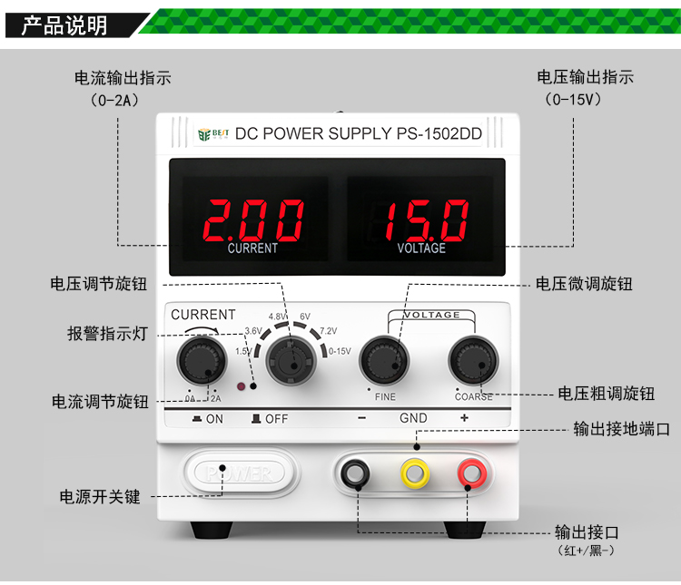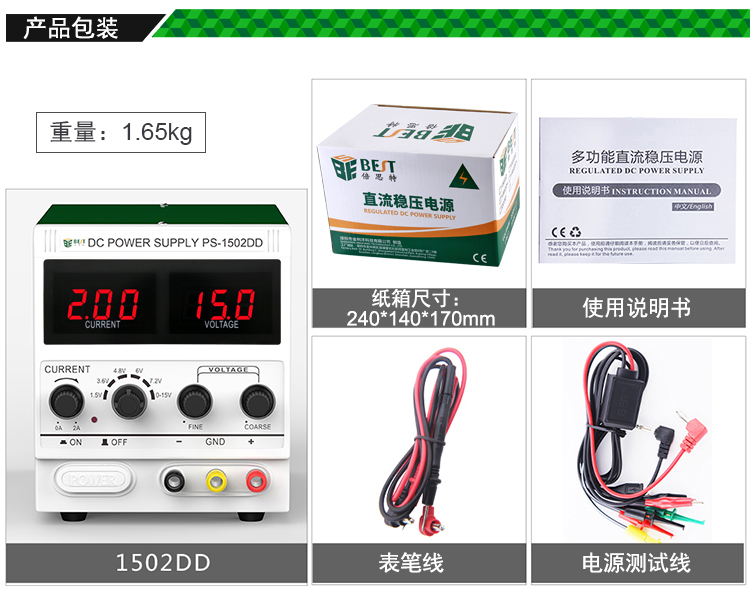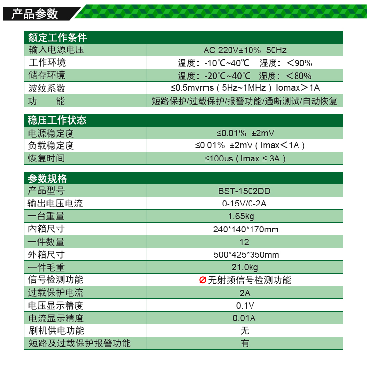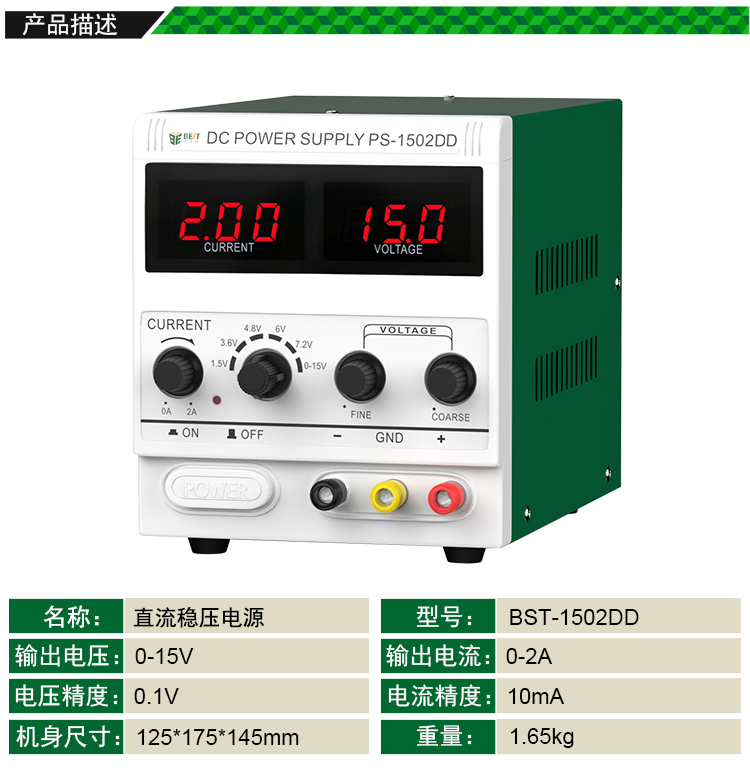 ? 产品名称: 直流稳压电源? 产品型号: BST-1502DD? 产品类别: 直流电源系列