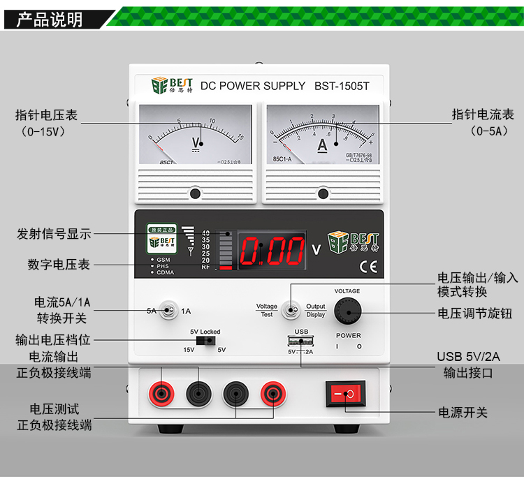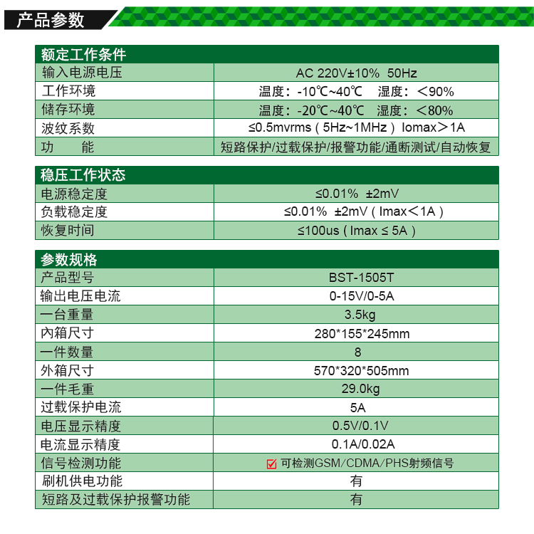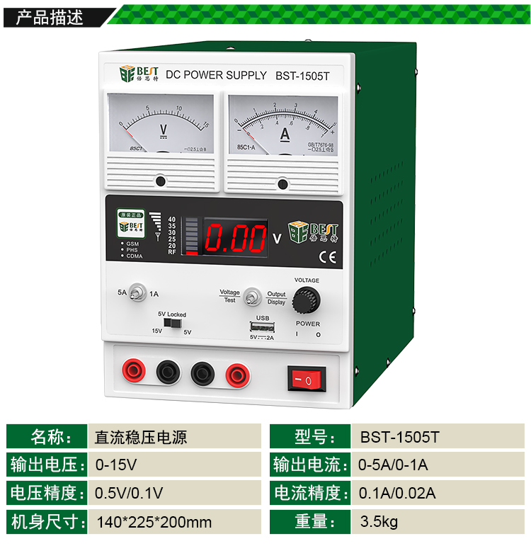 ? 产品名称: 直流稳压电源? 产品型号: BST-1505T? 产品类别: 直流电源系列