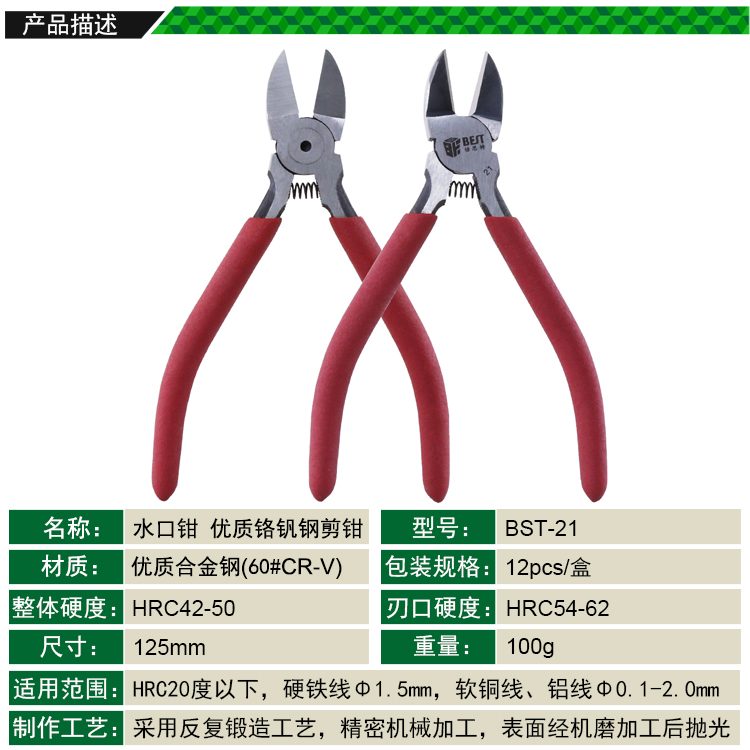 ? 产品名称: 水口钳? 产品型号: BST-21? 产品类别: 钳子系列