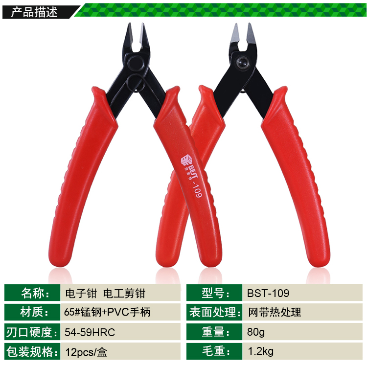 ? 产品名称: 电子钳 电子元器件钳子? 产品型号: BST-109? 产品类别: 钳子系列