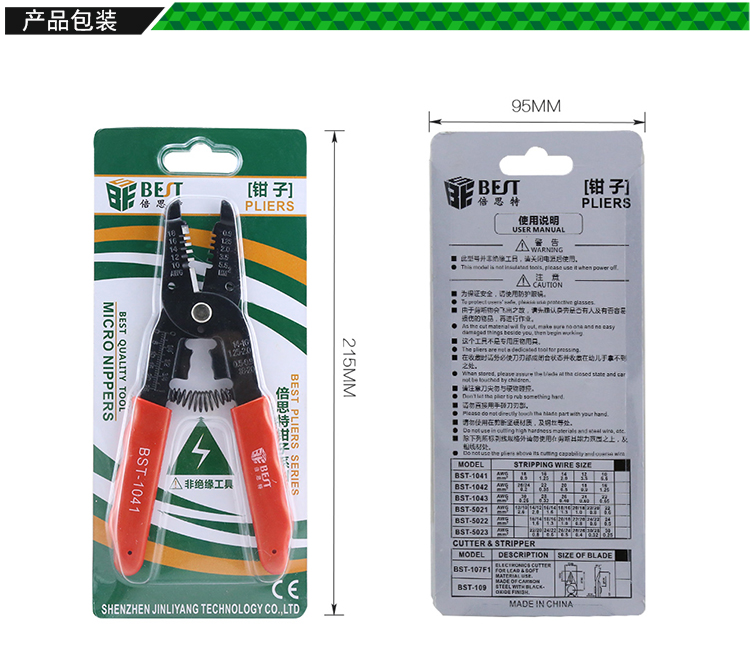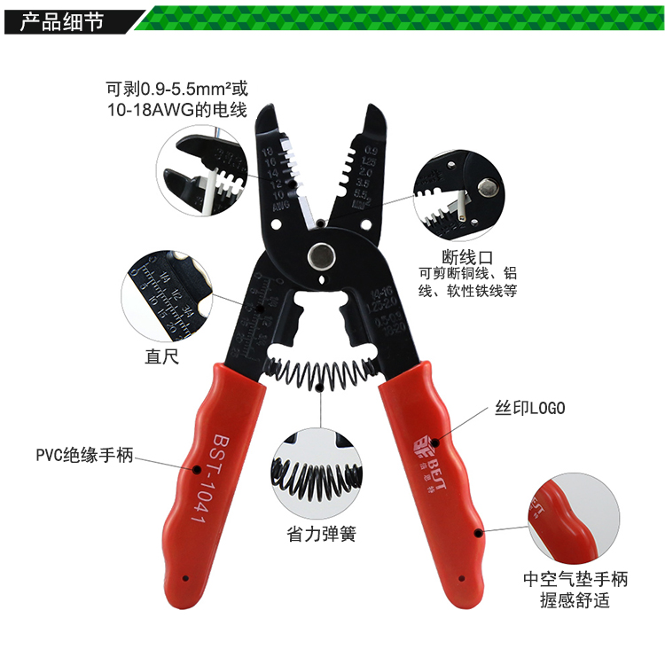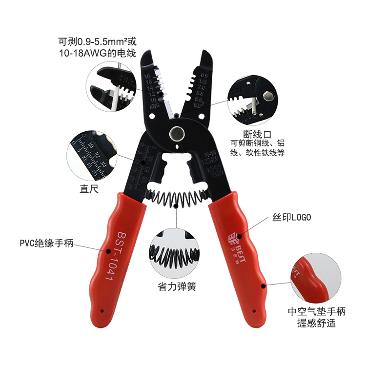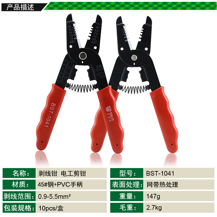 ? 产品名称: 剥线钳 电线钳 电工剪钳? 产品型号: BST-1041? 产品类别: 钳子系列