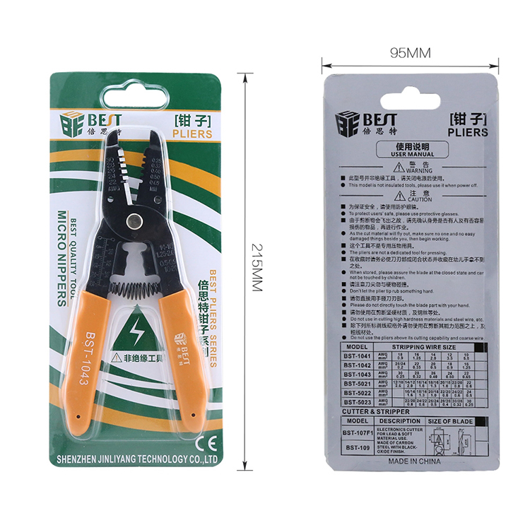 ? 产品名称: 剥线钳 电线钳 电工剪钳? 产品型号: BST-1043? 产品类别: 钳子系列