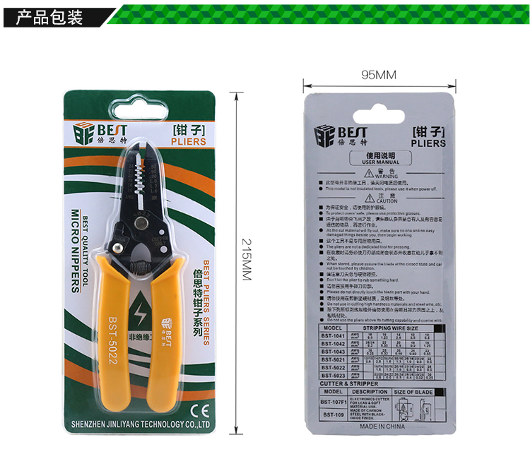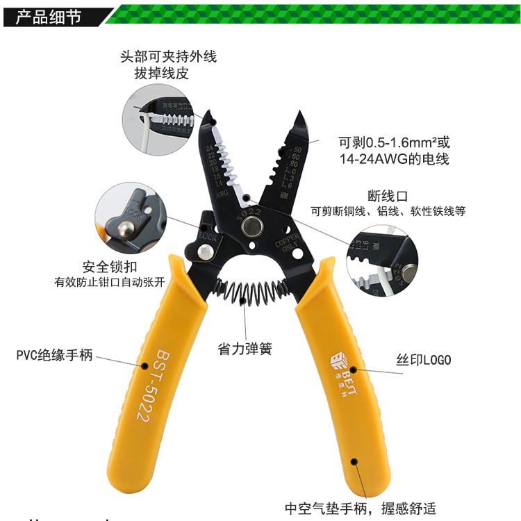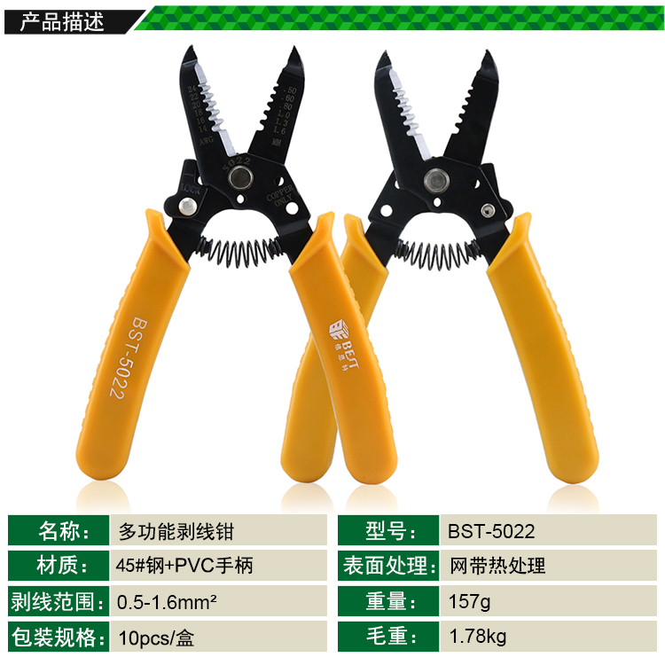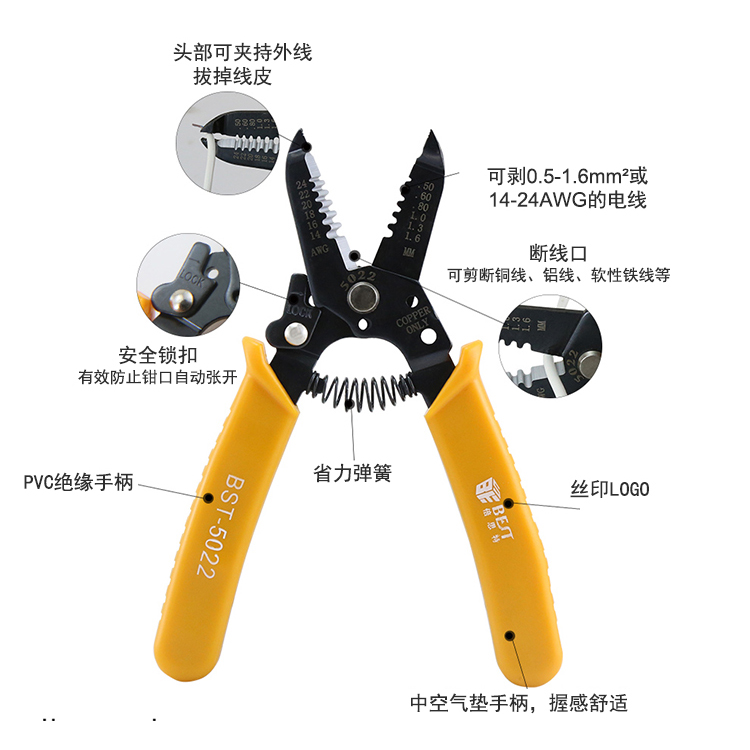 ? 产品名称: 剥线钳 电线钳 多功能剥线钳? 产品型号: BST-5022? 产品类别: 钳子系列