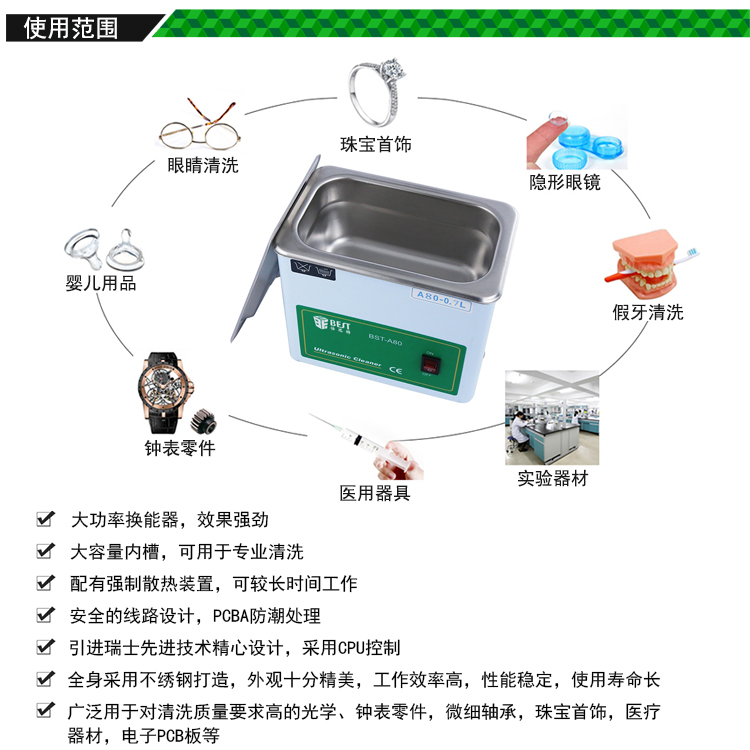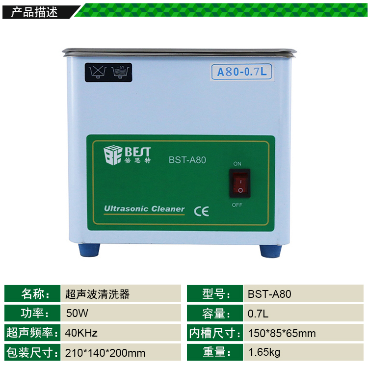 ? 产品名称: 超声波清洗机? 产品型号: BST-A80? 产品类别: 超声波清洗器系列