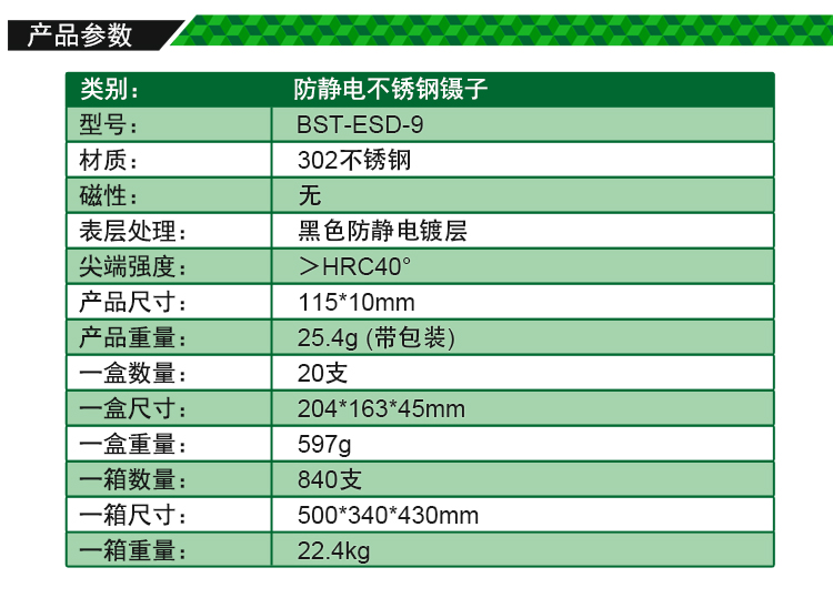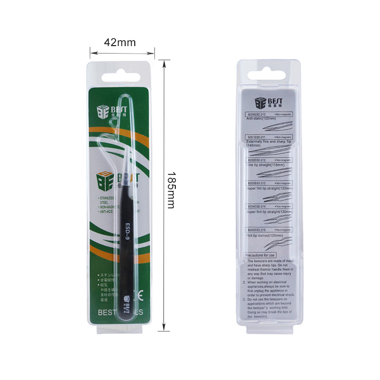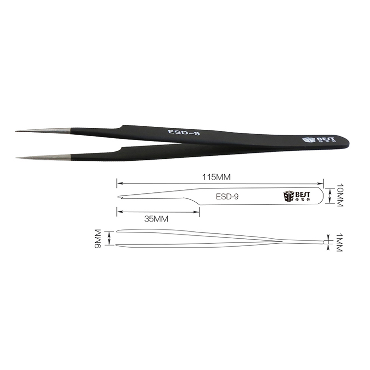 ? 产品名称: 优质钢化高级防静电镊子? 产品型号: BST-ESD-9? 产品类别: 镊子系列