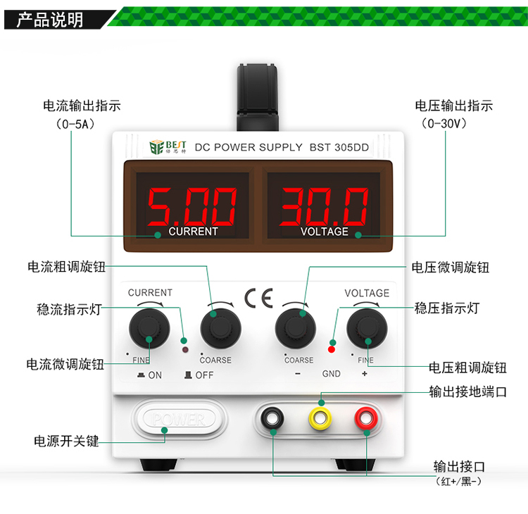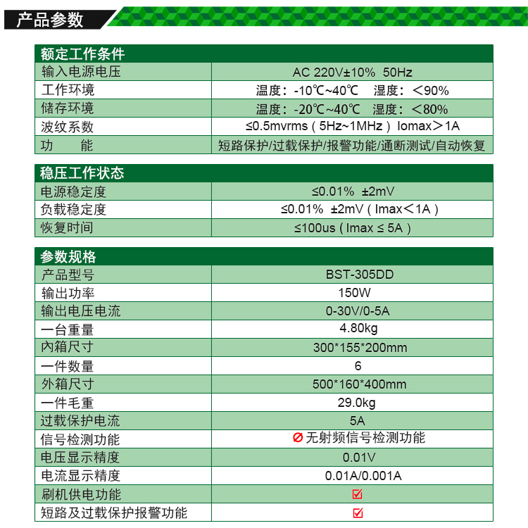 ? 产品名称: 直流稳压电源? 产品型号: BST-305DD? 产品类别: 直流电源系列