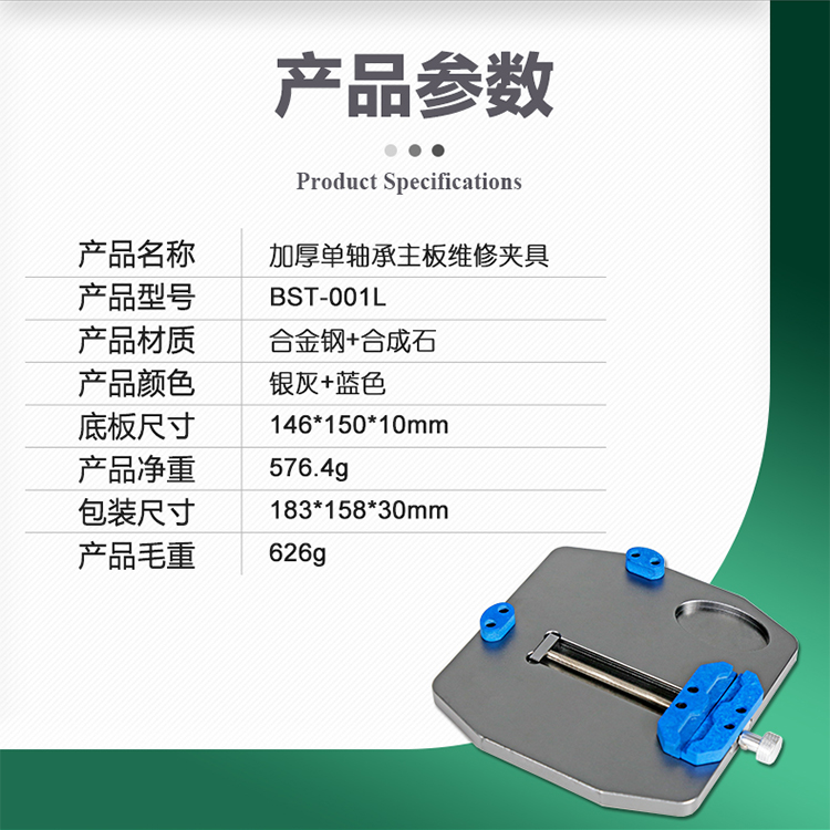 ? 产品名称: 加厚单轴承主板维修夹具? 产品型号: BST-001L? 产品类别: 维修卡具系列