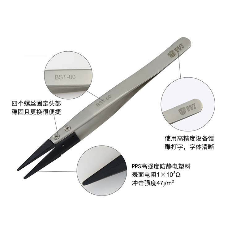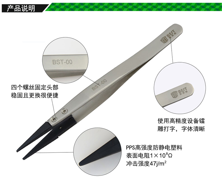 ? 产品名称: 防静电镊子可换头? 产品型号: BST-00? 产品类别: 镊子系列
