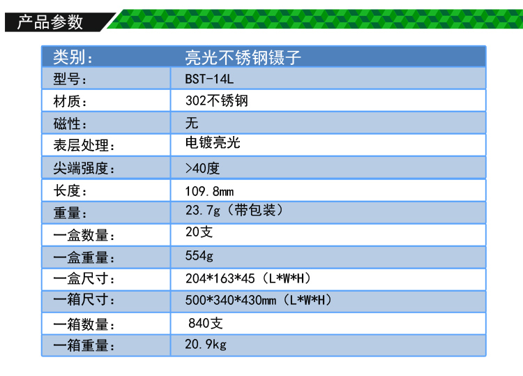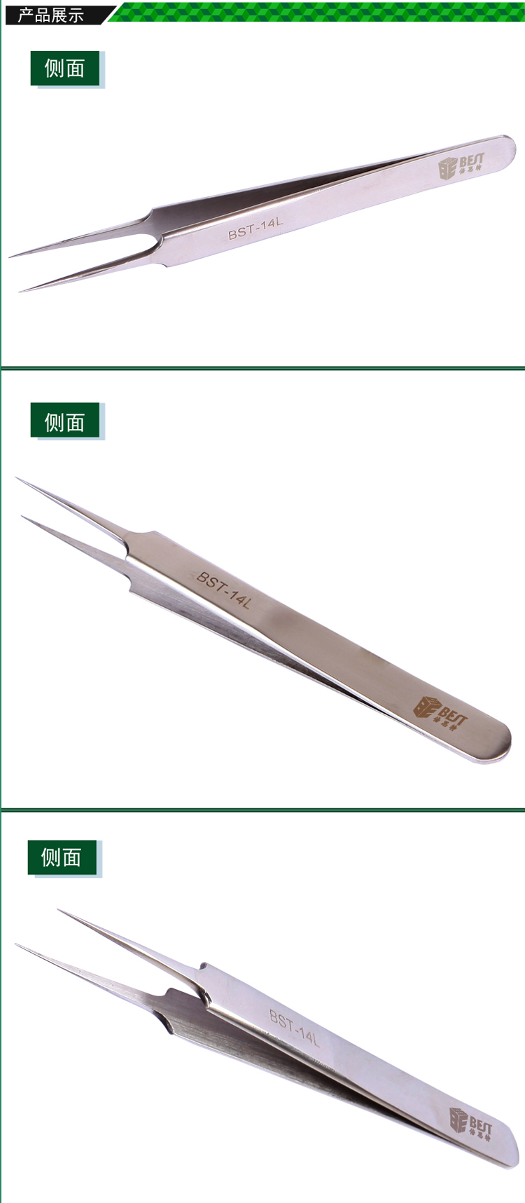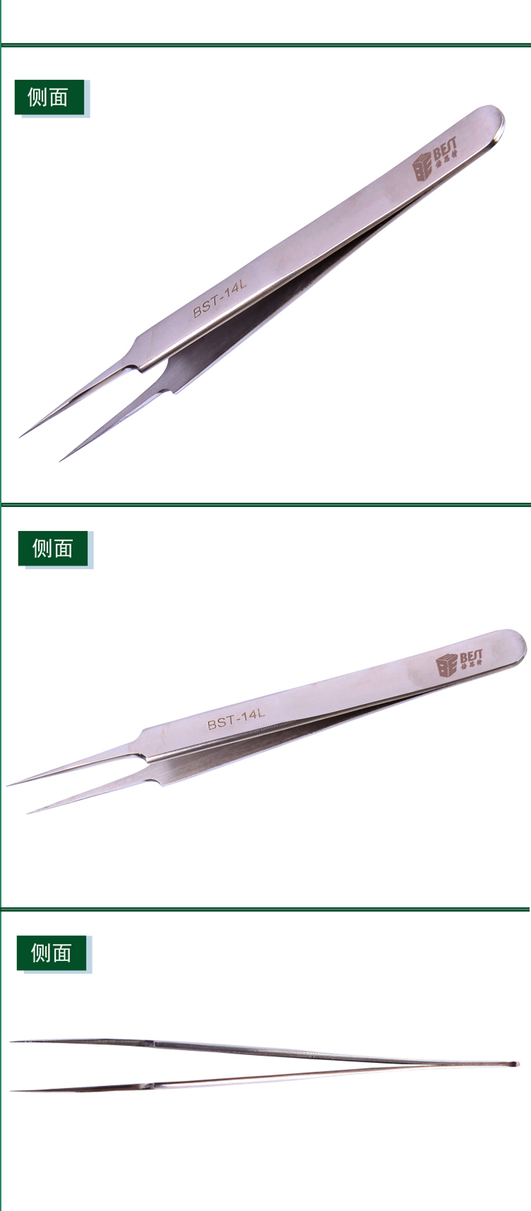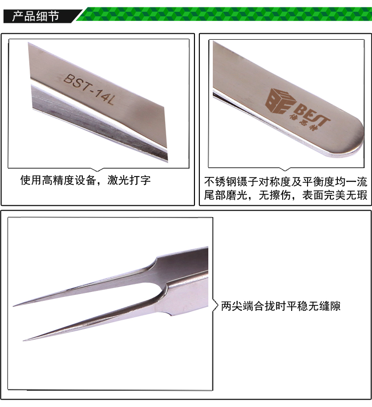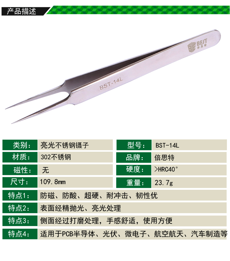 ? 产品名称: 亮光镊子 不锈钢镊子? 产品型号: BST-14L? 产品类别: 镊子系列