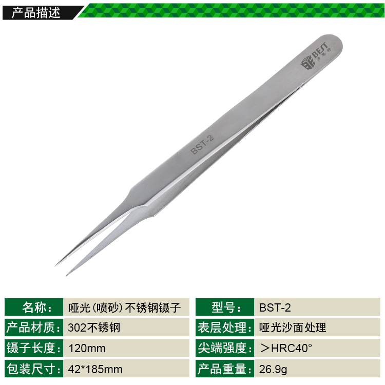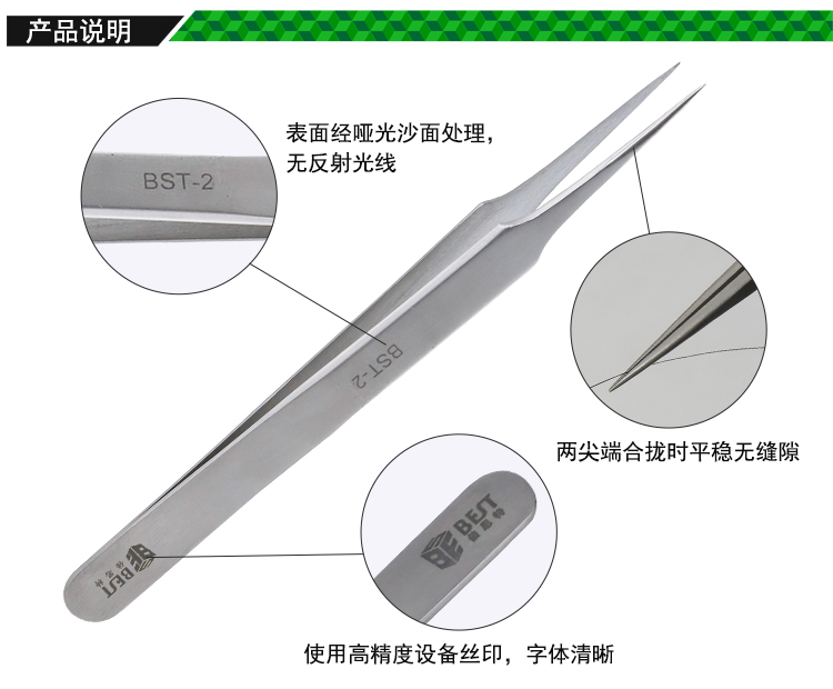 ? 产品名称: 亚光镊子 不锈钢镊子? 产品型号: BST-2? 产品类别: 镊子系列