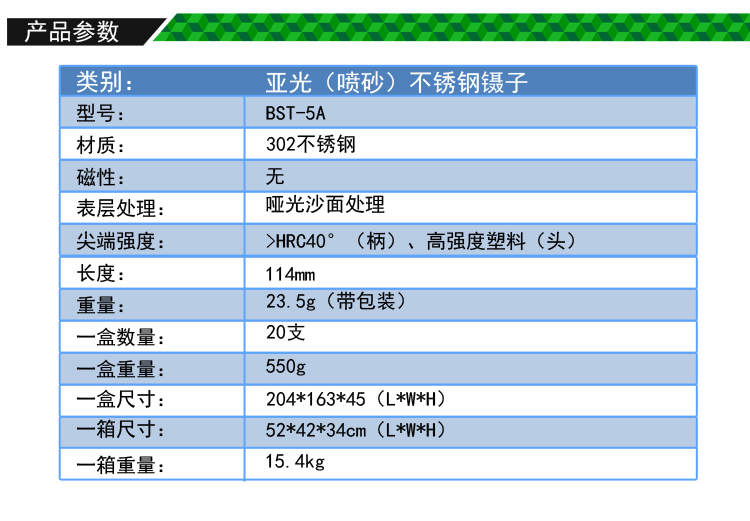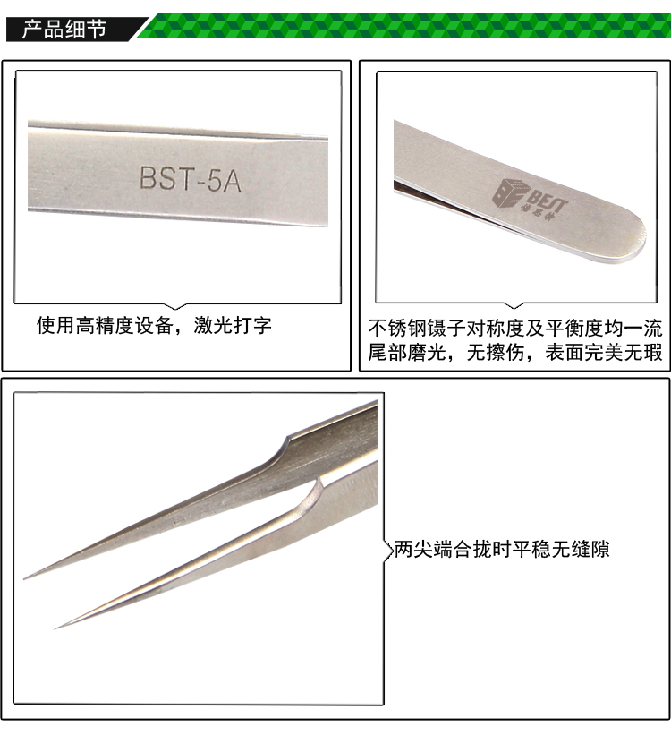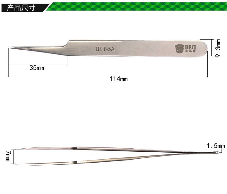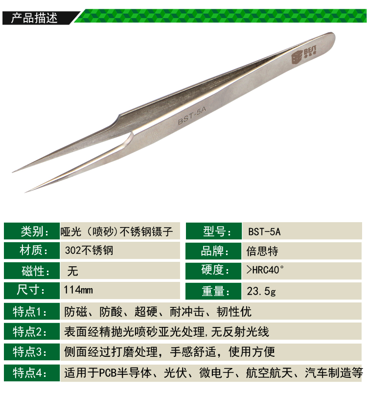 ? 产品名称: 亚光镊子 不锈钢镊子? 产品型号: BST-5A? 产品类别: 镊子系列