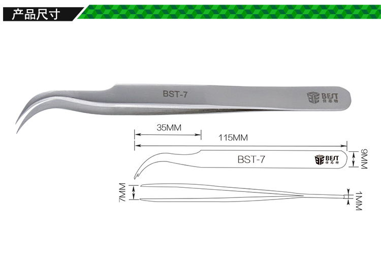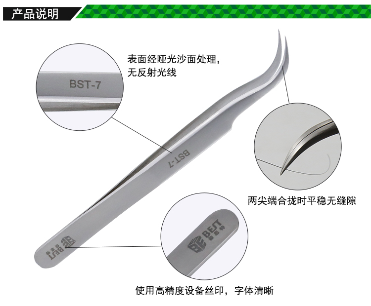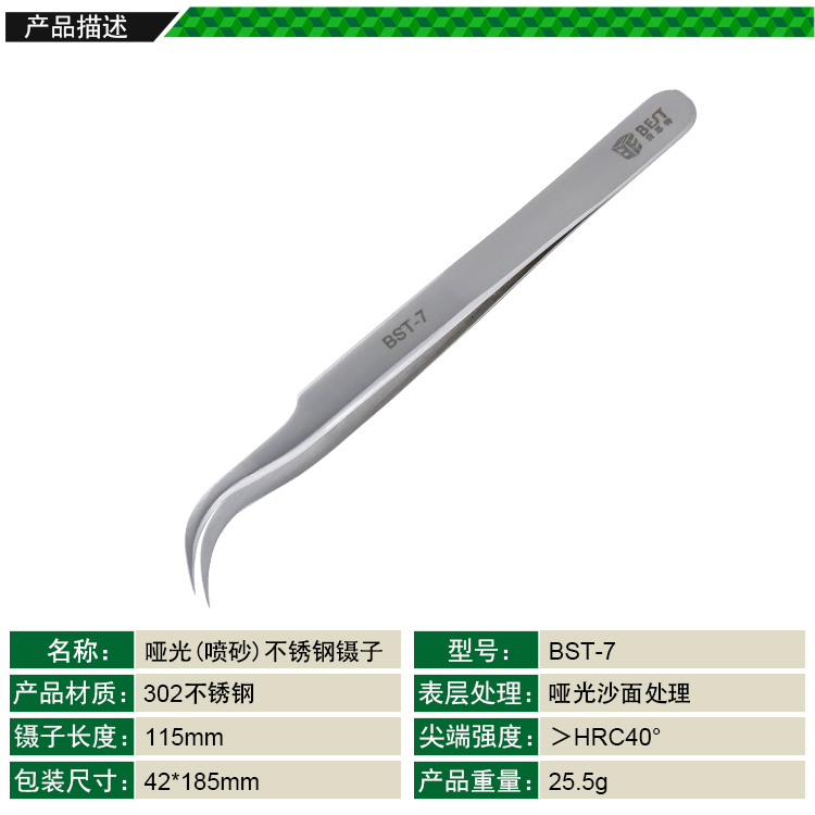 ? 产品名称: 亚光镊子 不锈钢镊子? 产品型号: BST-7? 产品类别: 镊子系列