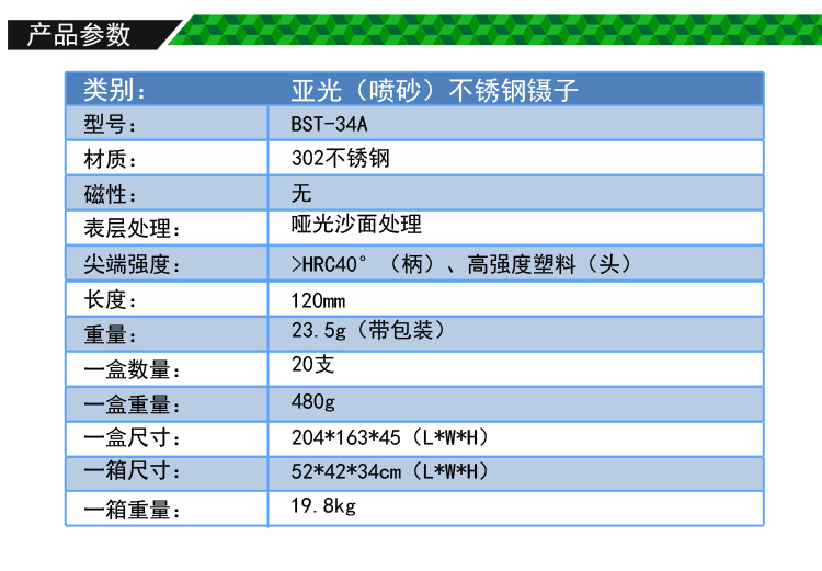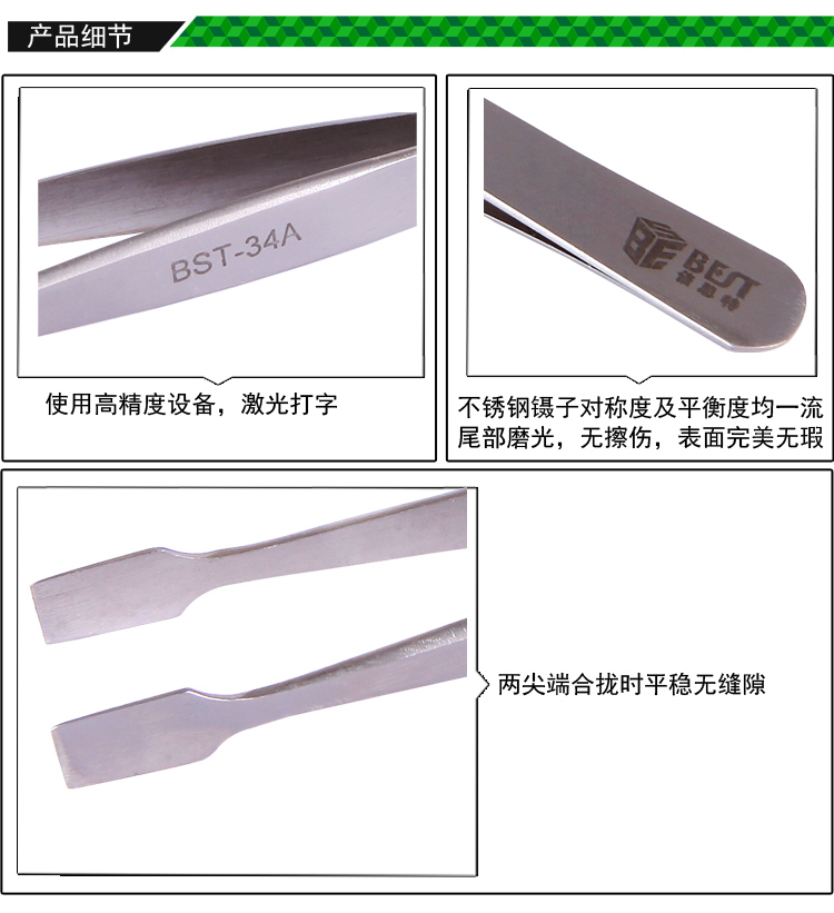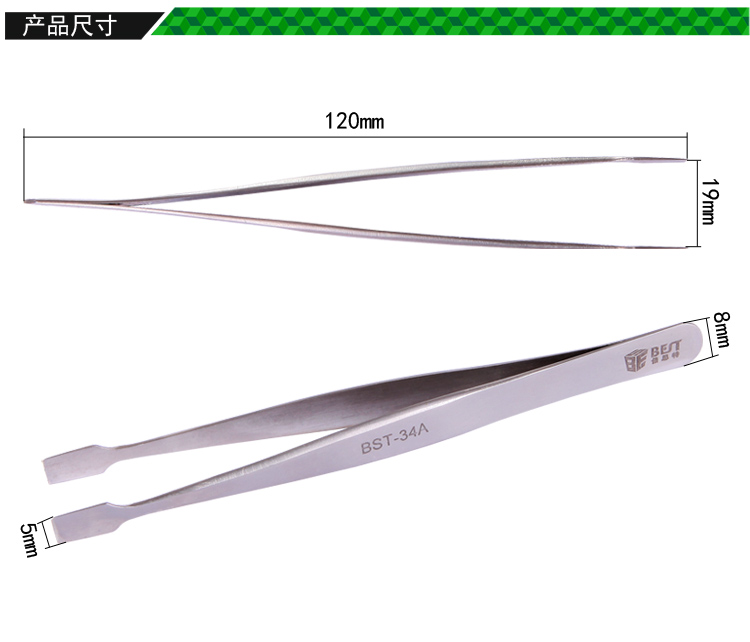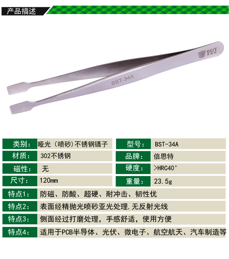 ? 产品名称: 亚光镊子 不锈钢镊子? 产品型号: BST-34A? 产品类别: 镊子系列