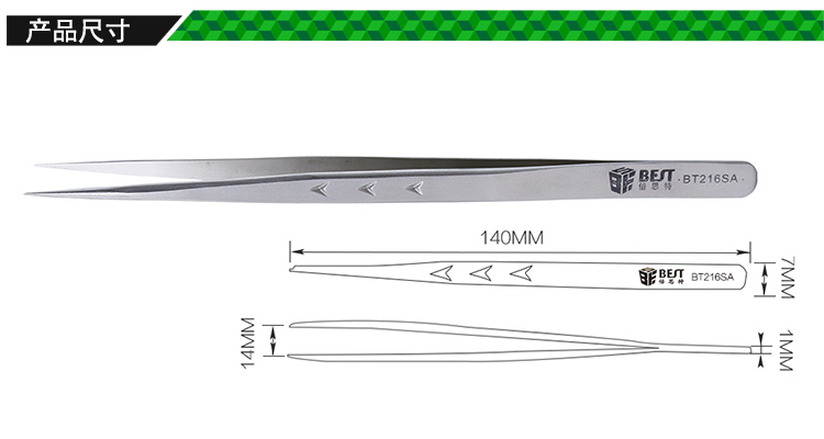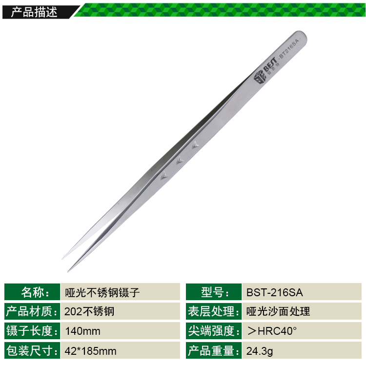 ? 产品名称: 亚光沙面镊子 不锈钢镊子? 产品型号: BST-216SA? 产品类别: 镊子系列