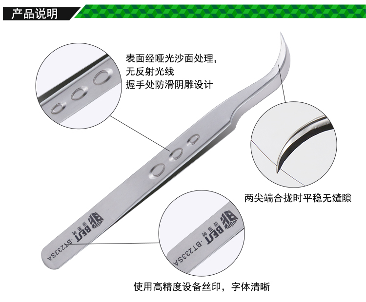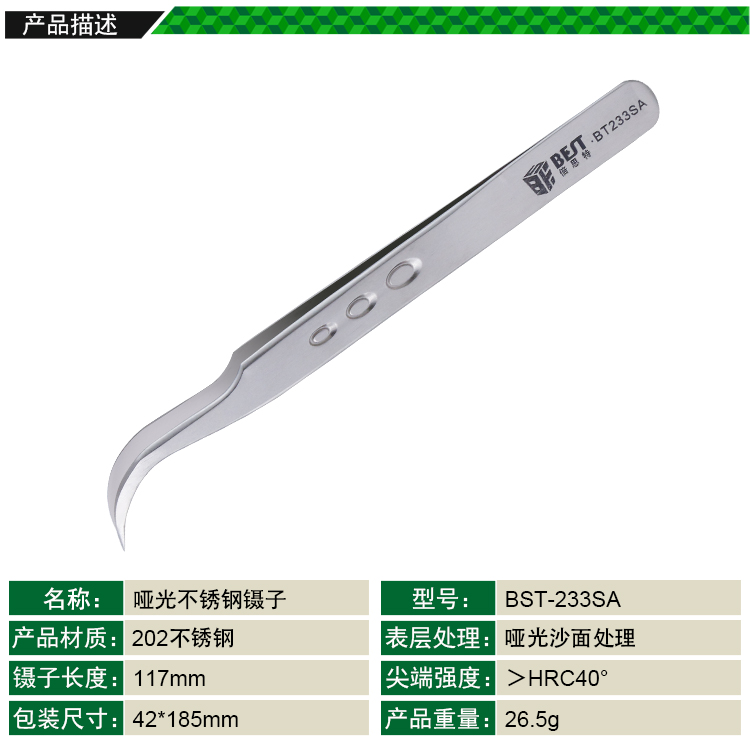? 产品名称: 亚光沙面镊子 不锈钢镊子? 产品型号: BST-233SA? 产品类别: 镊子系列