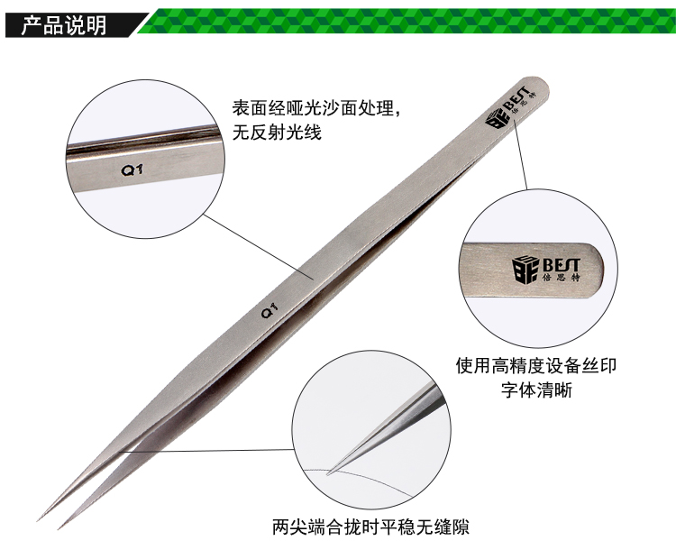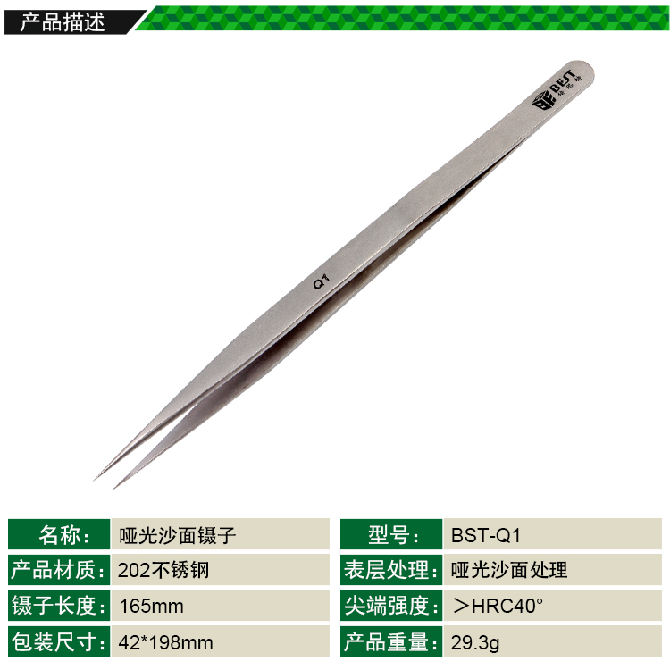 ? 产品名称: 亚光沙面镊子 不锈钢镊子? 产品型号: BST-Q1? 产品类别: 镊子系列