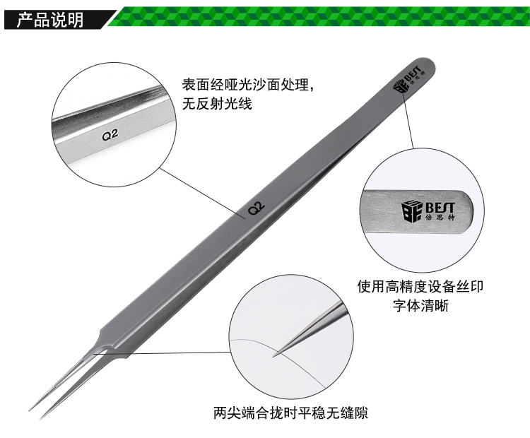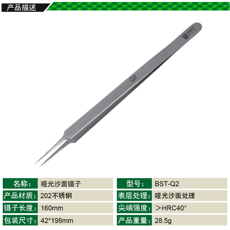 ? 产品名称: 亚光沙面镊子 不锈钢镊子? 产品型号: BST-Q2? 产品类别: 镊子系列