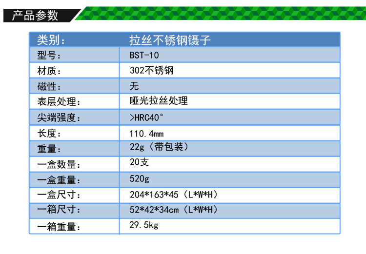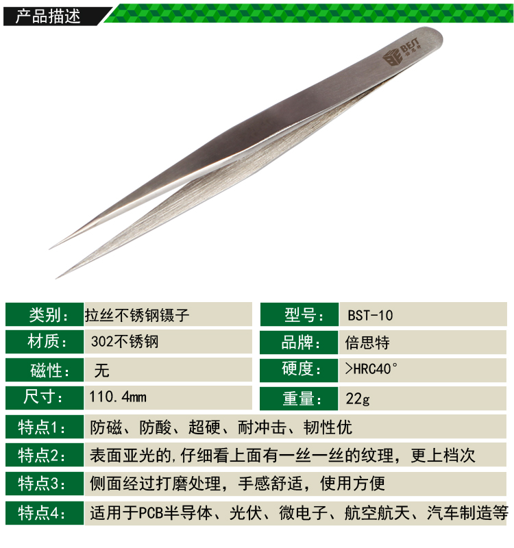 ? 产品名称: 金属拉丝镊子 不锈钢镊子? 产品型号: BST-10? 产品类别: 镊子系列