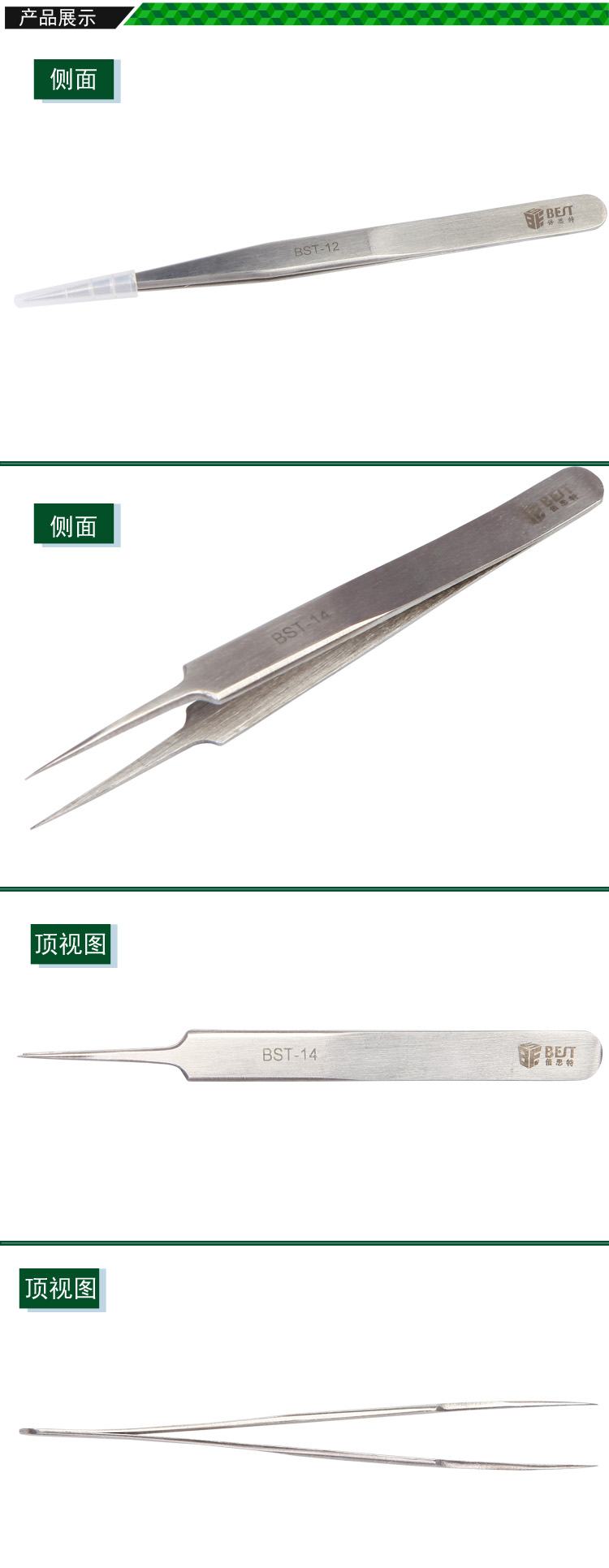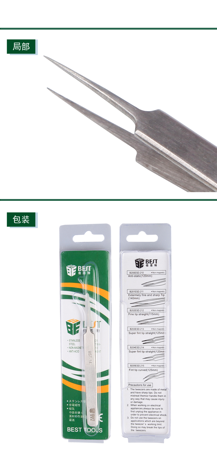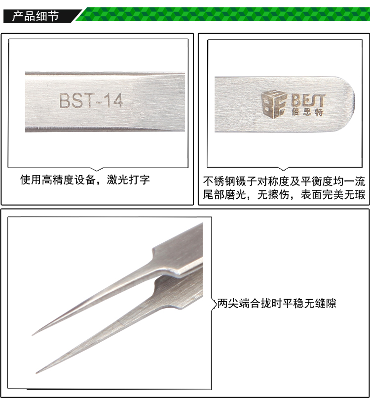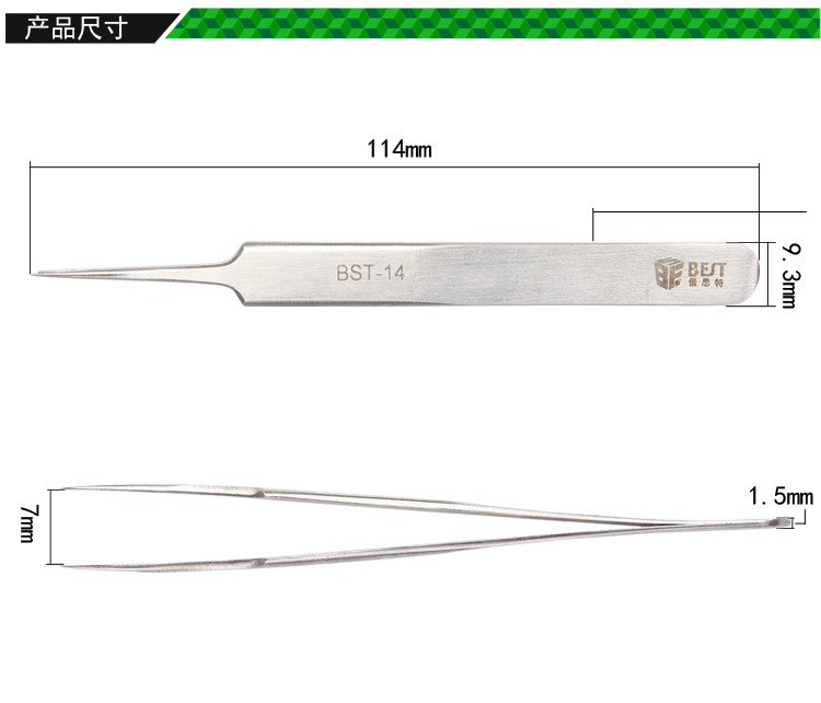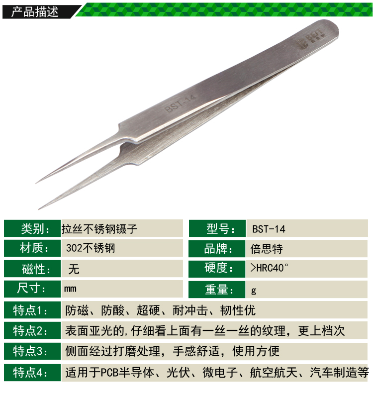 ? 产品名称: 金属拉丝镊子 不锈钢镊子? 产品型号: BST-14? 产品类别: 镊子系列