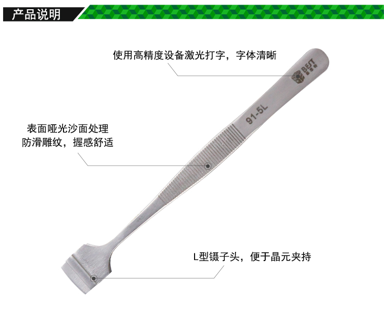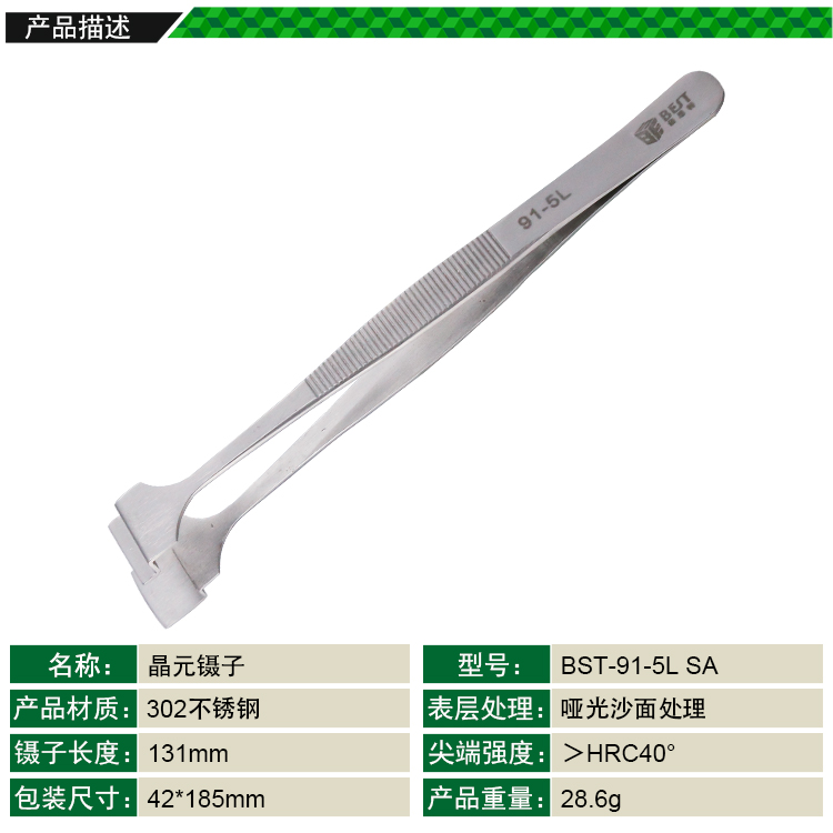 ? 产品名称: 晶元镊子? 产品型号: BST-91-5L? 产品类别: 镊子系列