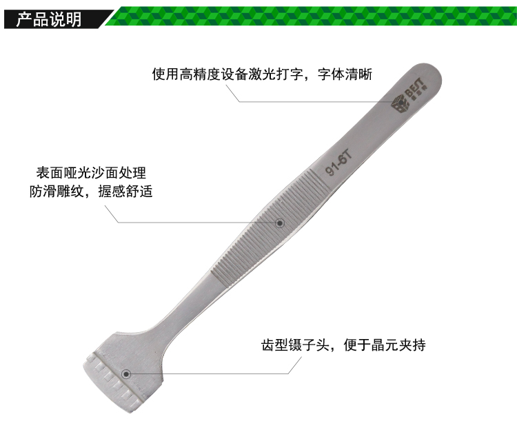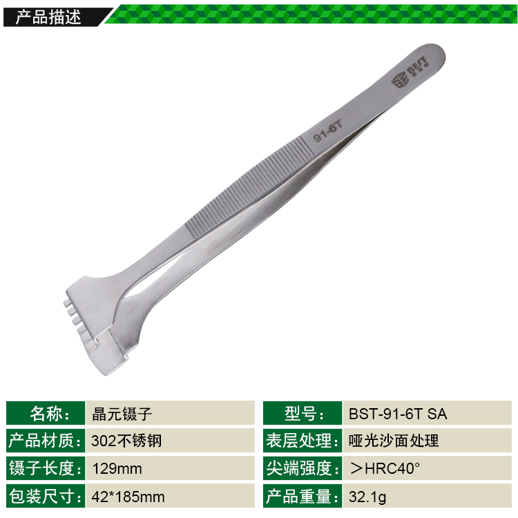 ? 产品名称: 晶元镊子? 产品型号: BST-91-6T? 产品类别: 镊子系列