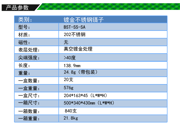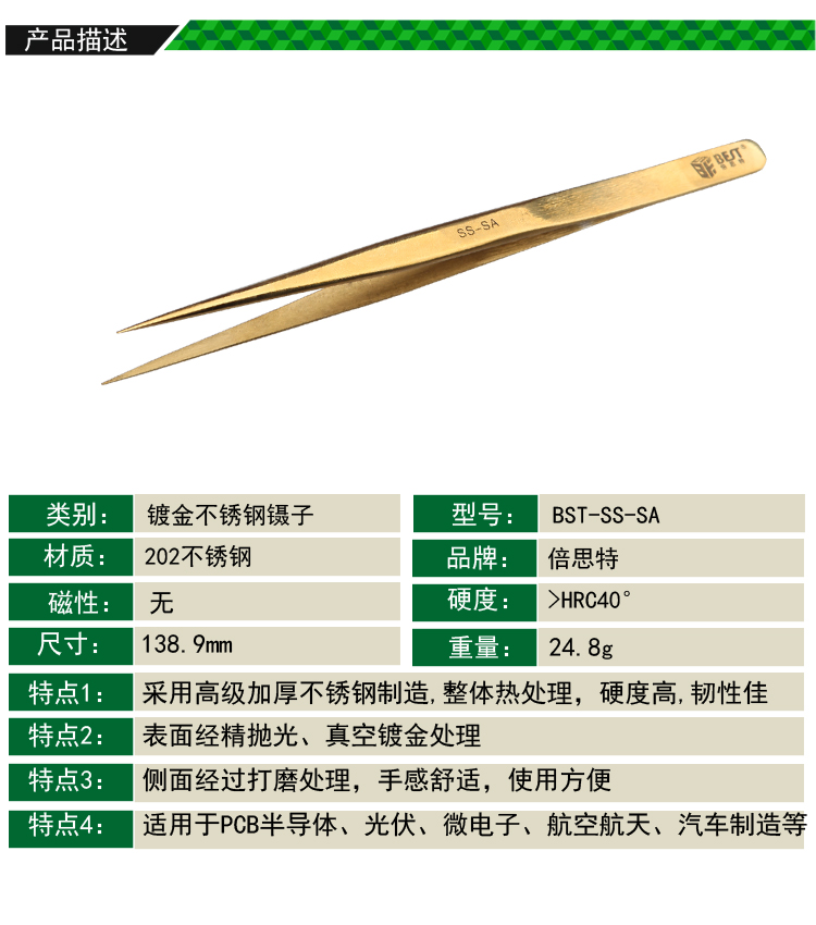 ? 产品名称: 金钢镊子? 产品型号: BST-SS-SA? 产品类别: 镊子系列