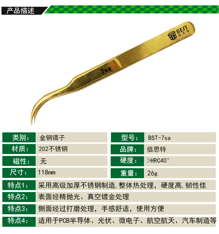 ? 产品名称: 金钢镊子? 产品型号: BST-7SA? 产品类别: 镊子系列