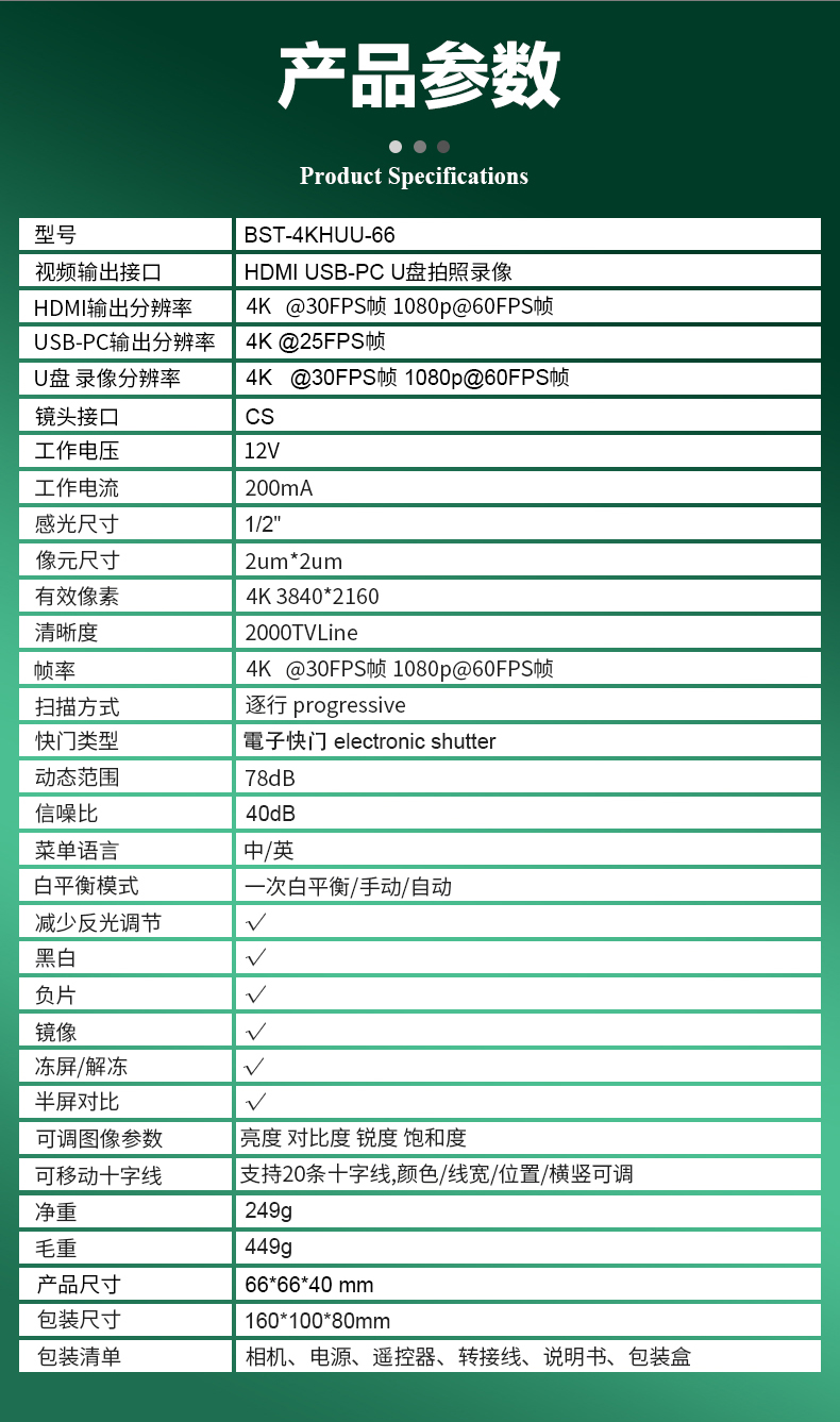 ? 产品名称: 4K显微镜摄像头? 产品型号: BST-4KHUU-66? 产品类别: 显微镜系列