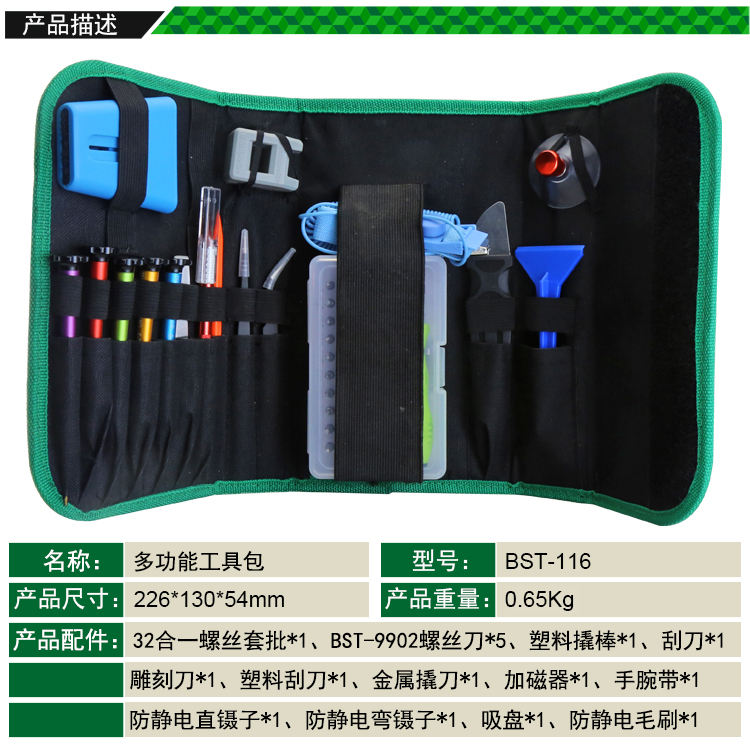 ? 产品名称: 多功能工具包? 产品型号: BST-116? 产品类别: 拆机工具系列
