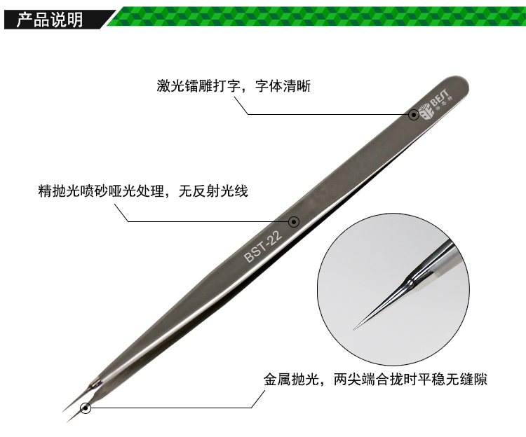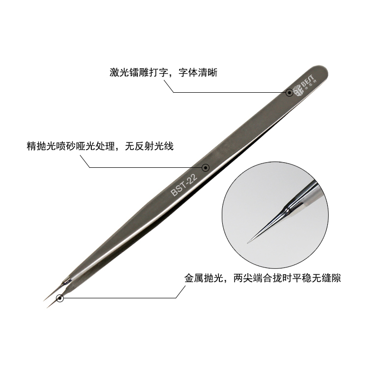 返回当前位置: 首页 / 产品中心 / BST-22 指纹飞线镊子 亚光镊子 不锈钢镊子 圆尖头抛光直镊子