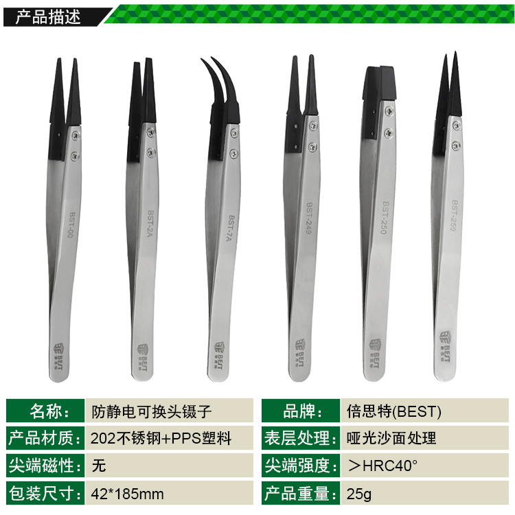 返回当前位置: 首页 / 产品中心 / 防静电镊子可换头 碳纤维塑料换头镊子 202不锈钢材 亚光喷砂夹具防静电可换头镊子