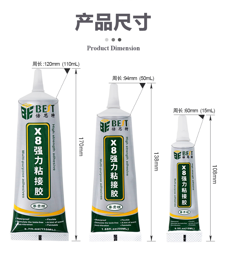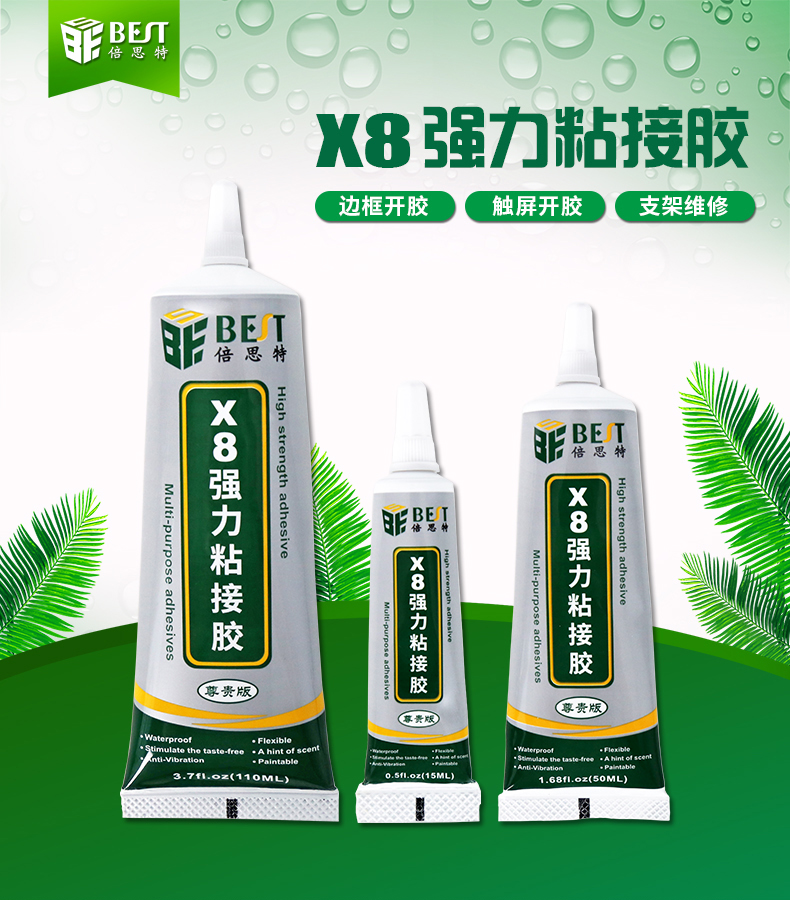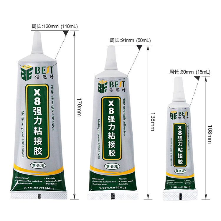 返回当前位置: 首页 / 产品中心 / BST-X8 强力粘接胶 多功能软性透明胶水(15ML/50ML/110ML)