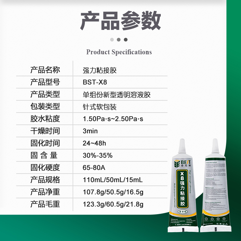 ? 产品名称: 强力粘接胶? 产品型号: BST-X8? 产品类别: 胶水胶纸系列