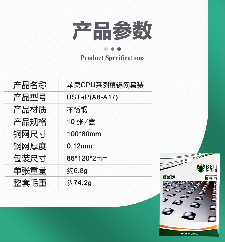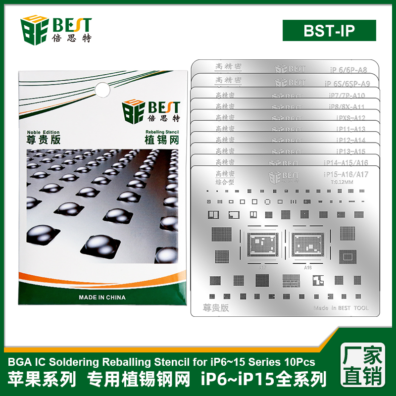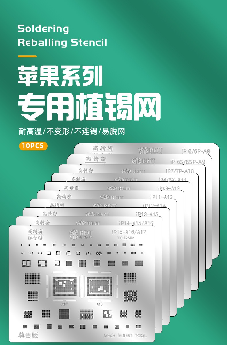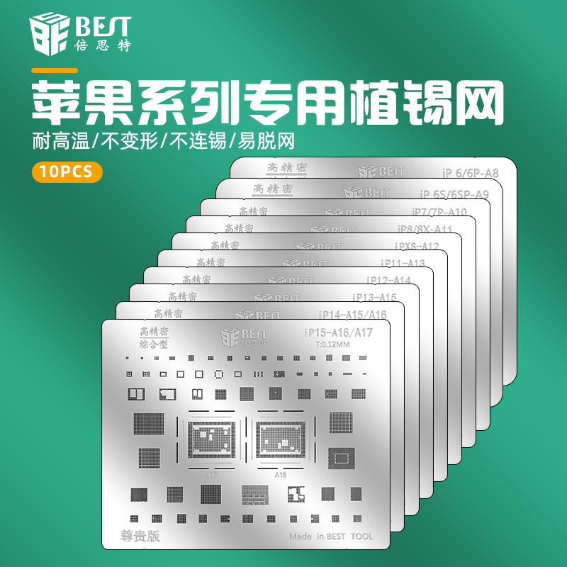 ? 产品名称: 苹果植锡网10pcs? 产品型号: BST-IP(A8-A17)? 产品类别: 植锡网系列