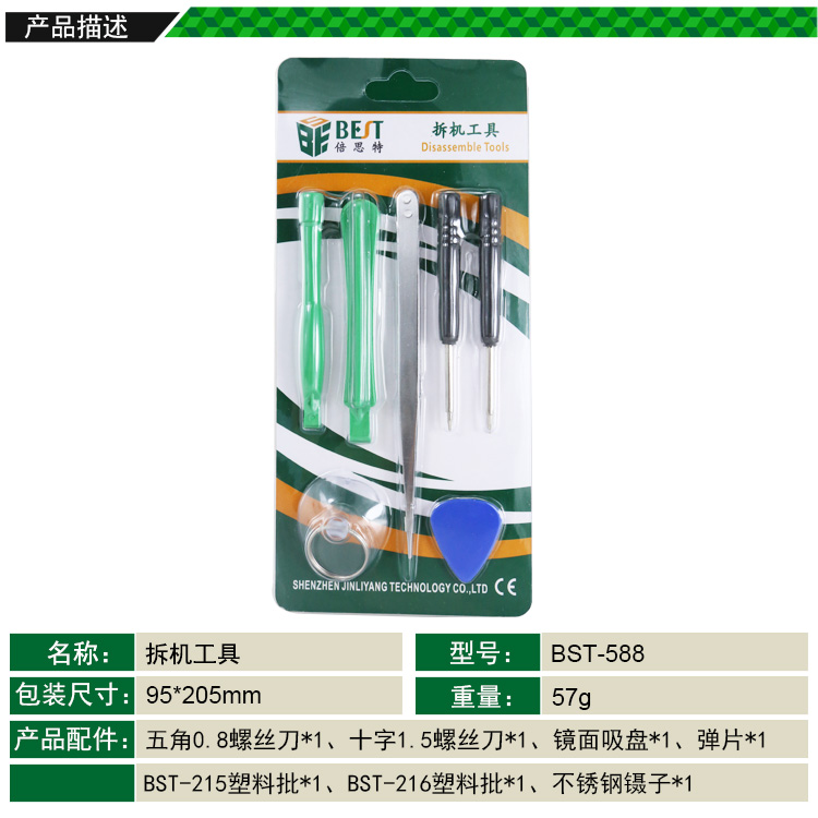 ? 产品名称: 手机拆机工具7pcs? 产品型号: BST-588? 产品类别: 拆机工具系列